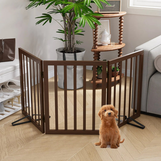 Dog Gate for Inside,Bamboo Freestanding Pet Gate for Doorways,Indoor, 24" Espresso